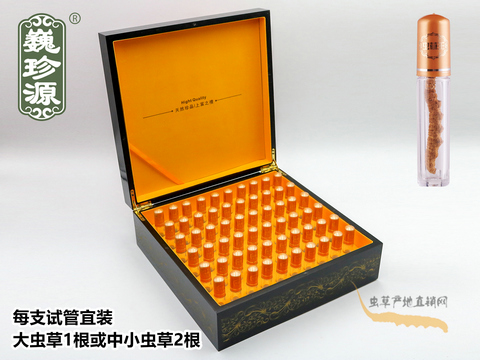 適合規(guī)格:每支管能裝中等與大規(guī)格冬蟲夏草一根,具體為:1.6~3條/克,能裝小規(guī)格冬蟲夏草兩根,具體為:3.5~5條/克。